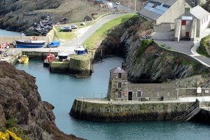 Cemaes Bay has a lovely harbour with many small craft coming and going. There are a few pubs and a restaurant there and ample car parking next to a sheltered beach suitable for bathing and fun. A short walk along the headland gets you to Llanbadrig Church pictured here, with great views towards the Skerries, small uninhabited islands off the coast with a prominent lighthouse.
